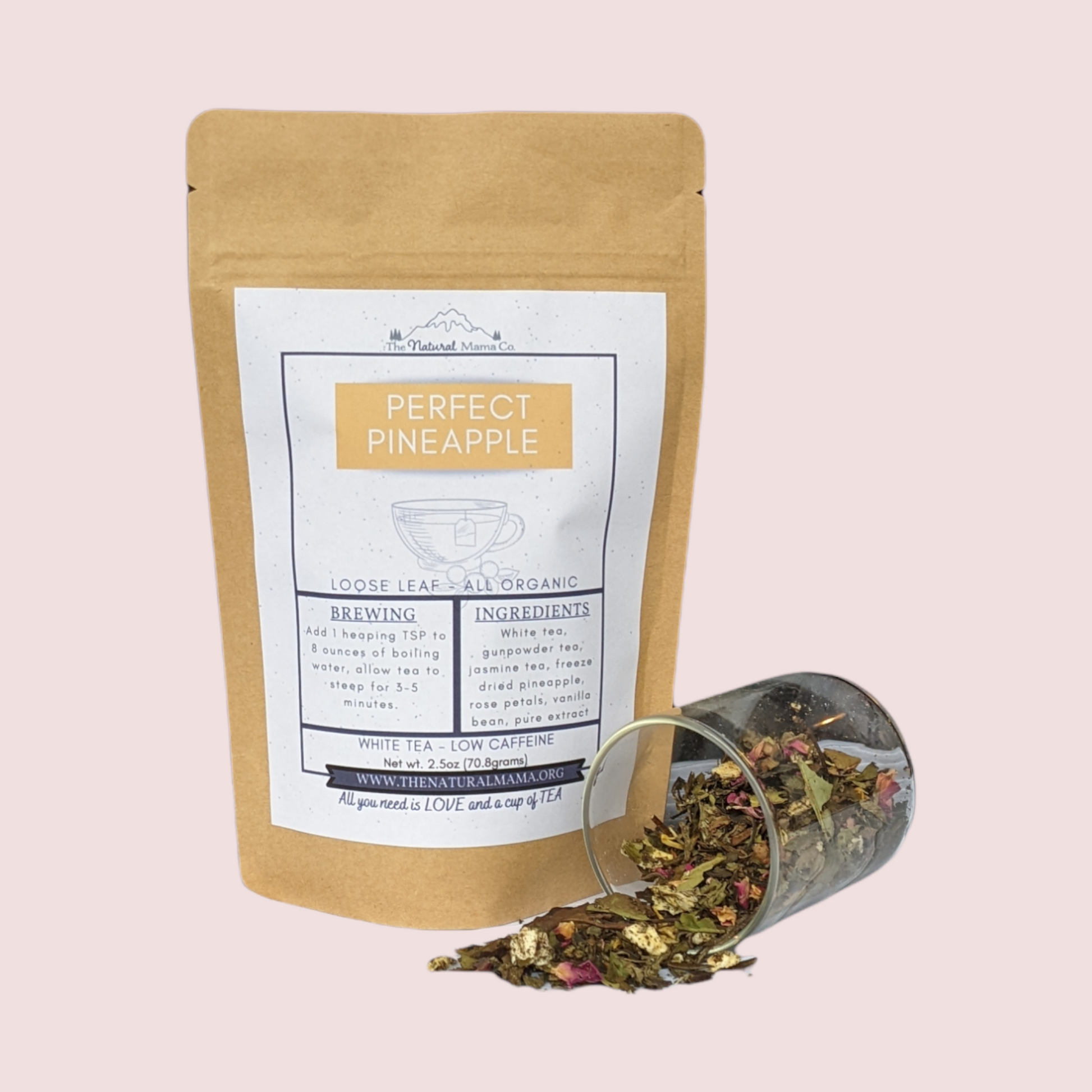 Perfect Pineapple White Tea will awaken your senses, blended with white tip Jasmine that gives the tea a soft floral sweetness without overpowering the fresh pineapple flavor! This one is a MUST to add to your tea collection.