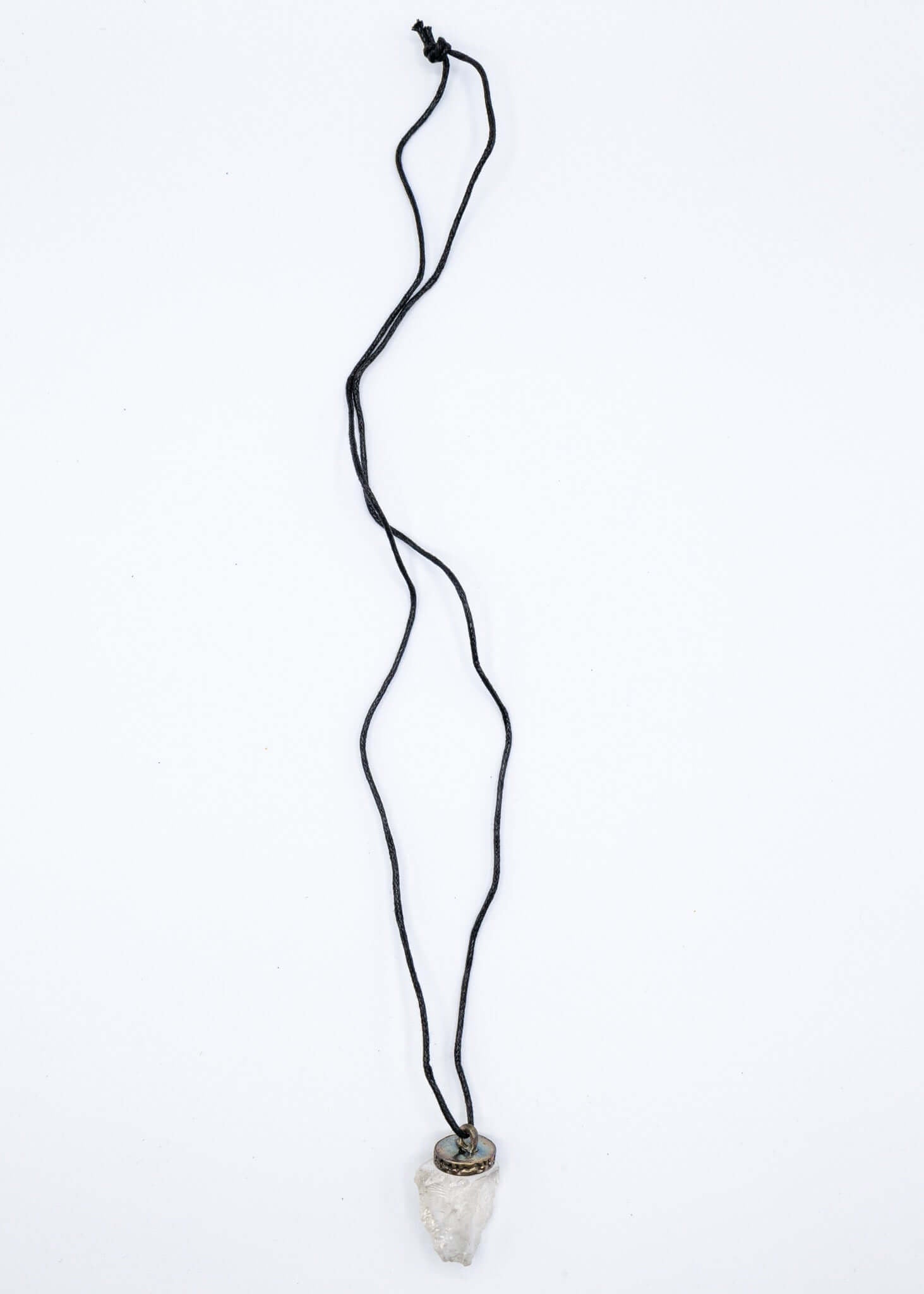This elegant quartz crystal necklace features a pristine, natural rough quartz crystal pendant, exuding a serene yet powerful energy. Each crystal is unique, showcasing its own distinct shape and clarity, and is carefully selected for its quality and vibrance. The pendant is gracefully suspended on a high-quality, adjustable leather strap, offering a comfortable and customizable fit for any neck size. The strap's dark, supple leather contrasts beautifully with the clear, luminous quartz, creating an eye-catching piece suitable for both casual and formal wear. This necklace not only makes a fashion statement but also serves as a symbol of purity, healing, and spiritual growth, making it a perfect gift for those seeking a connection with nature's wonders.